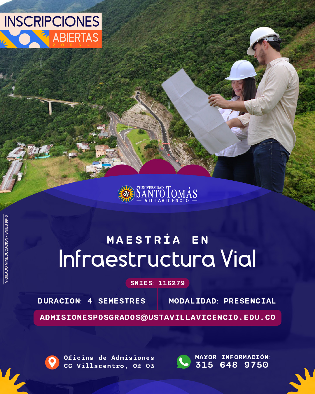 Las salidas académicas en la Maestría en Infraestructura Vial de la Universidad Santo Tomás permiten a los estudiantes complementar su formación teórica con experiencias prácticas en campo, visitando obras viales, laboratorios especializados y proyectos de infraestructura en desarrollo. Estas actividades fortalecen la comprensión de temas como geotecnia, diseño de pavimentos, construcción de túneles y gestión de proyectos, promoviendo el análisis crítico, la innovación y la aplicación de soluciones reales que respondan a las necesidades sociales, ambientales y económicas de la región.